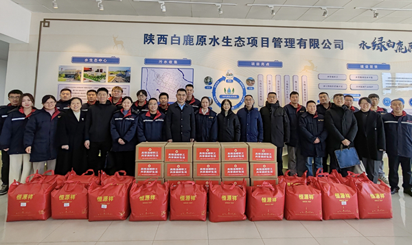 春節(jié)將至,歲寒情深。1月22日,省總工會(huì)黨組成員、副主席高莉,省能源化學(xué)地質(zhì)工會(huì)主席莊華章一行赴陜西環(huán)保集團(tuán)白鹿原水生態(tài)中心項(xiàng)目開展冬季“送溫暖”活動(dòng),為堅(jiān)守在一線的干部職工送去冬日的慰問和新年的祝福。集團(tuán)公司黨委副書記、工會(huì)主席趙建文陪同。